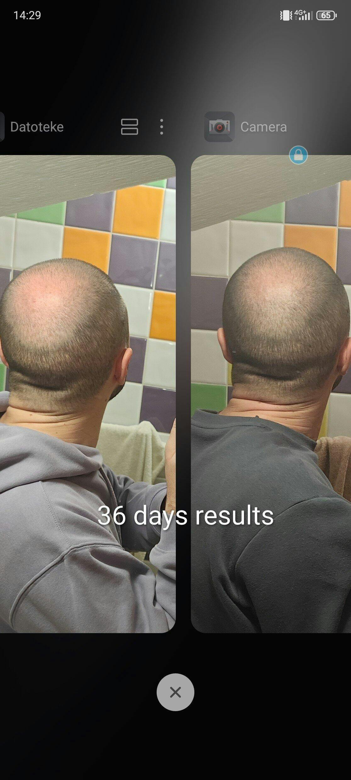 75% förbättrad hårmängd efter 2 månader