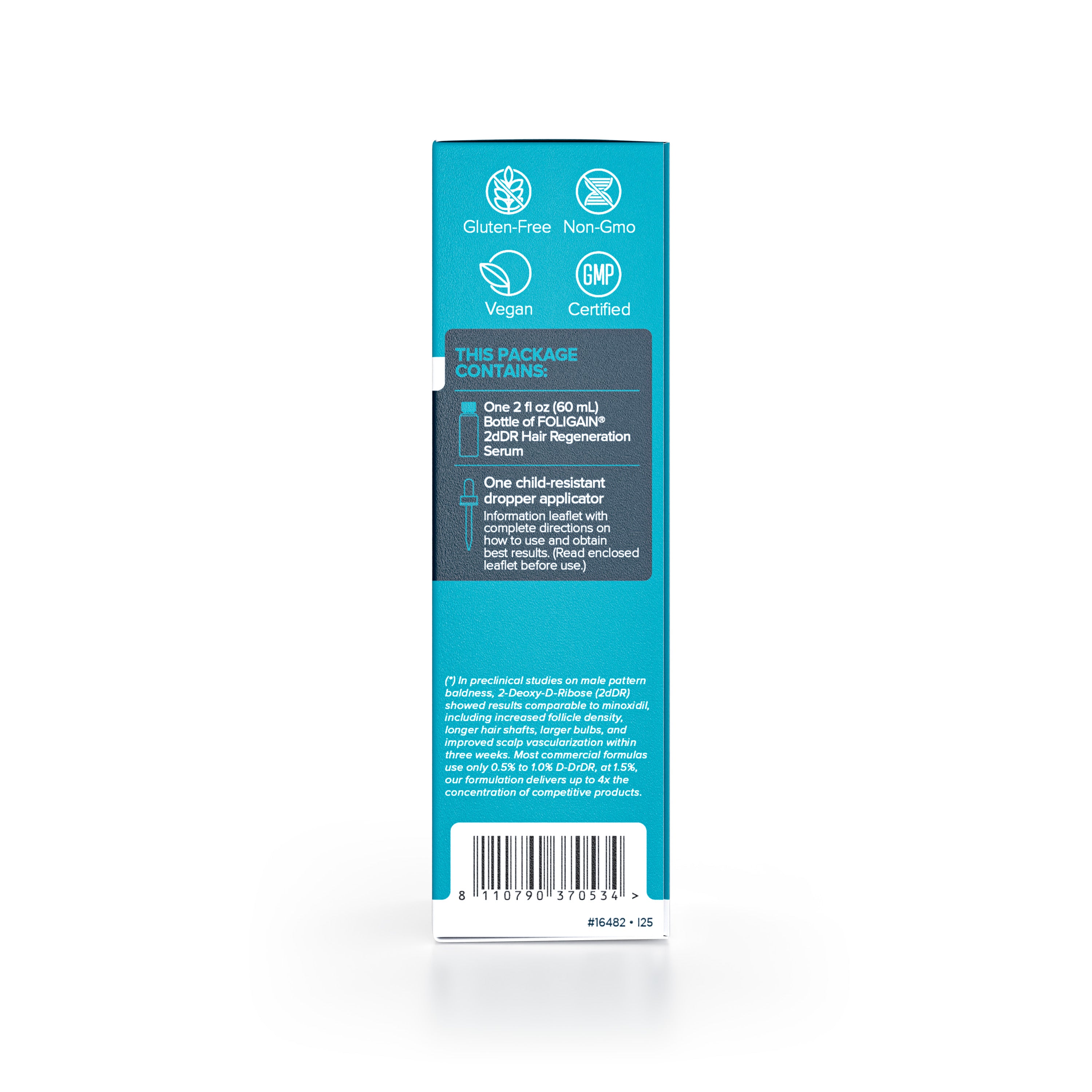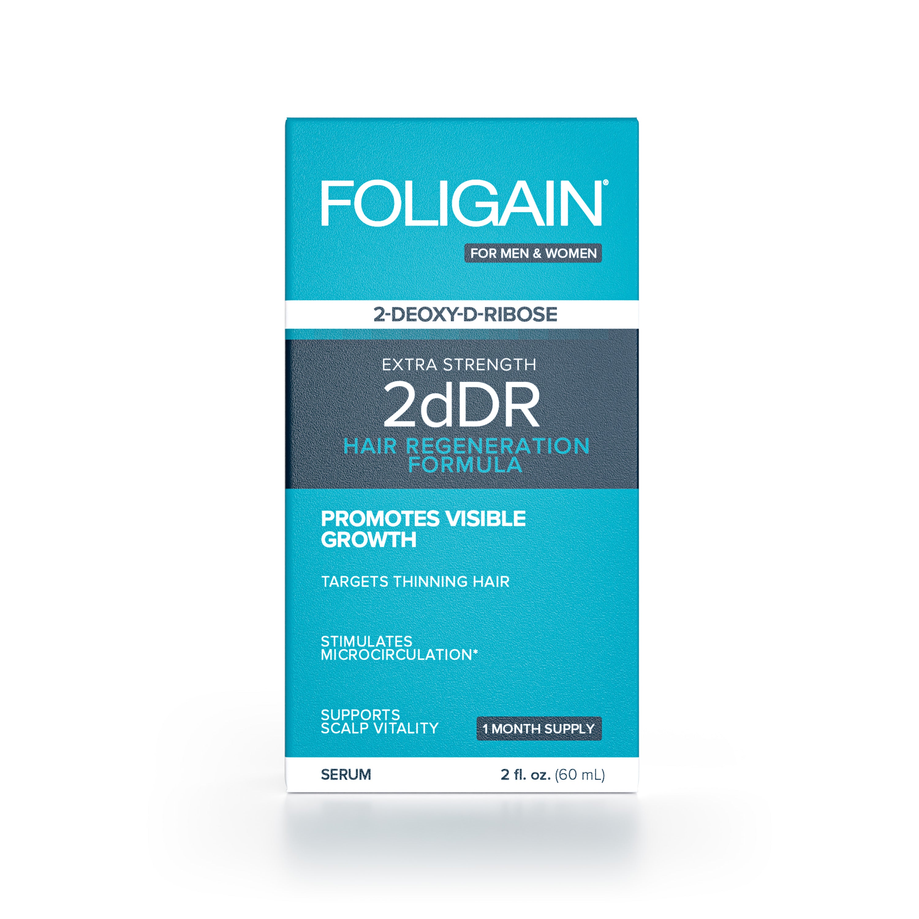 FOLIGAIN® 2dDR Hair Regeneration Serum är framtaget för män och kvinnor som vill ha ett mer proaktivt sätt att hantera tidigt tunnande hår och stödja ett fylligare hårsvall. Detta avancerade serum levererar 1,5 % 2-deoxy-D-ribos (2dDR) direkt till hårbotten för att hjälpa till att återuppladda ytan där håret kan förlora volym. Den lätta texturen absorberas snabbt, lägger sig lätt ovanpå andra produkter och passar naturligt in i vilken daglig rutin som helst.