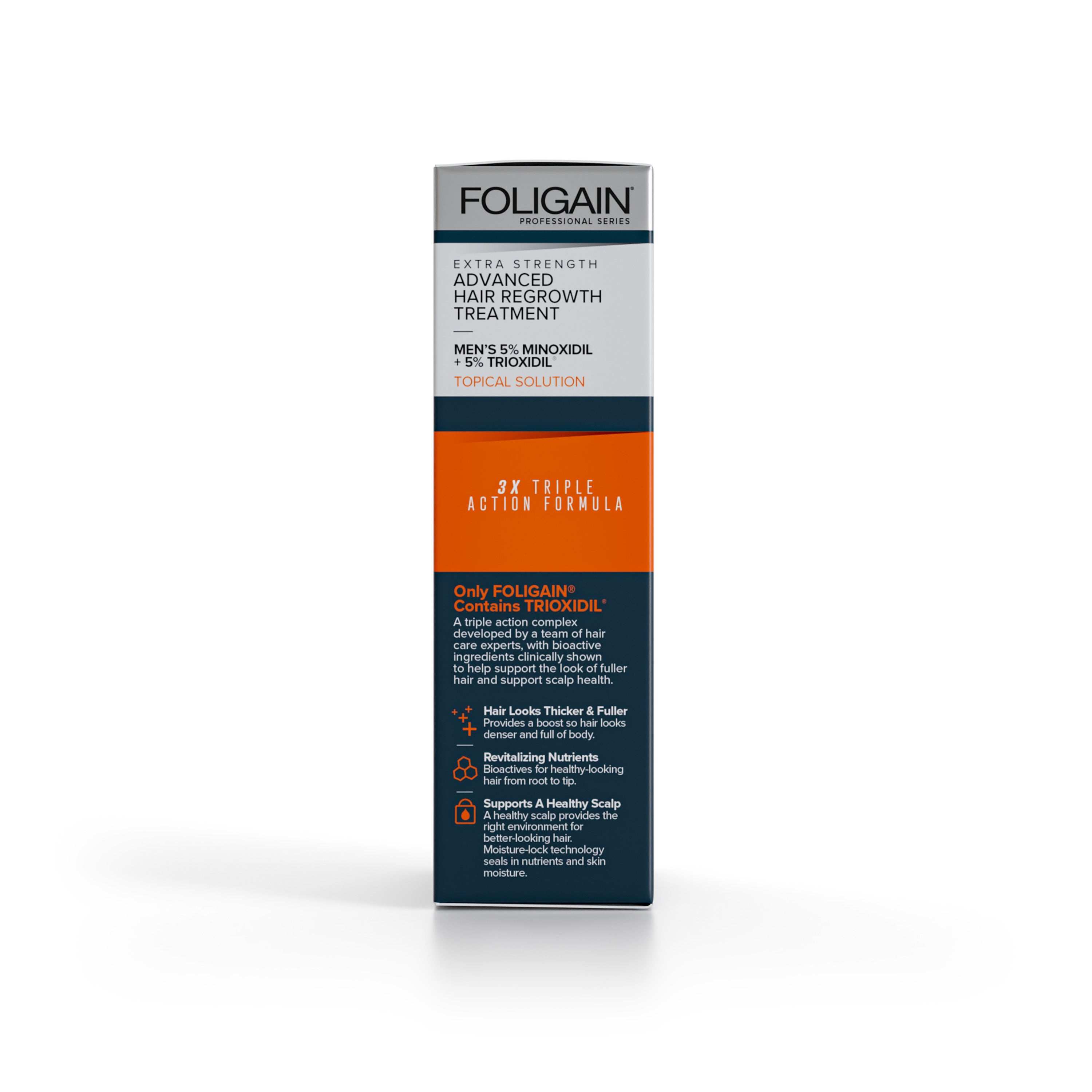 Endast FOLIGAIN innehåller Trioxidil, ett trippelverkande komplex med kliniskt testade ingredienser som riktar sig mot orsakerna till tunt hår.